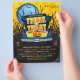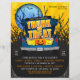 Halloween Church Trunk oder Leckerei Marketing Advertisement Event Flyer mit blauem Kfz-Trunk gefüllt mit Candy & Pumpkin, Blue Moon, Fence & Trees. Passen Sie auf Ihre Wünsche an.