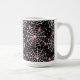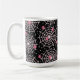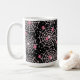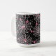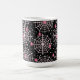 Eine Tasse mit einem niedlichen nahtlosen Muster mit weißen Spinnweben und rosa Spinnen.