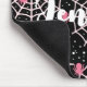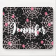 Ein Mauspad mit niedlichem, nahtlosen Muster mit weißen Spinnweben und rosa Spinnen.