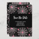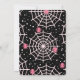 Save the Date Karte mit einem niedlich nahtlosen Muster mit weißen Spinnweben und rosa Spinnen.