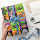Ein farbenfrohes Papier mit verschiedenen Halloween-Symbolen