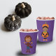 Dieser niedliche Papierbecher wurde für die Koordination mit unserem Halloween Costume Party for Kids Collection entworfen. Auf der einen Seite ist ein hübsches Kind in einem Kürbiskostüm gekleidet und auf der anderen Seite ein Werwolf. Der Hintergrund ist solide lila. Klicken Sie auf die Registerkarte Zusammenstellungen, um die entsprechende Einladung bzw. die entsprechenden Teller zu erhalten.