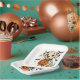 Dieses niedliche Halloween-Party ist mit einem bezaubernden dalmatinischen Welpe mit Fledermäusen und einem orangen Kürbislaterne Kürbis ausgestattet. Vergnügen Sie sich bei der Gestaltung Ihrer Feier.