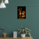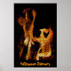 Flammen hinter einem Kaminbildschirm verwandeln sich in zwei fröhliche Halloween-Tänzer auf diesem lustigen Poster!