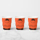 Spaß, spuke, Halloween-Designs auf orangefarbenen Papiertassen. Ideal für Halloween-Partys und Feiern.