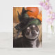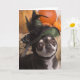 Niedlicher Chihuahua in grünem Hexenhut gekleidet für halloween. Umgeben von halben Kürbissen und Süßigkeiten. © und ® Bigstock® - Alle Rechte vorbehalten.