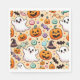 Halloween-Gespenster, Jack-o-Laternen, Hexenhüte und Bonbons auf orangefarbenem Hintergrund.