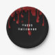 Halloween Teller mit tropfendem, dunkelrotem Blut auf schwarz. Passende Papierbecher sind ebenfalls verfügbar.