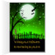 Un squelette de marche effrayant dans une cour grave avec une pleine lune et un arrière - plan de ciel vert. Design très amusant et effrayant pour vos cartes de voeux Halloween.