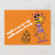 Halooween Einladung Postkarte mit Skelett Color orange