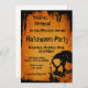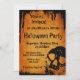 Halloween Einladung für ein Halloween-Party mit Schädel auf orangefarbenem Grunge Hintergrund. Wirf dieses Halloween ein beängstigendes Soiree!