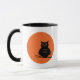 Eine Eule vor einem vollen orange Mond für Halloween.
