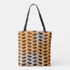 Tote Tasche für Halloween Bonbons mit meinem Design fliegender schwarzer Fledermäuse auf orangefarbenem und weißem Hintergrund.