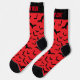 Vervollständigen Sie Ihren Trick oder behandeln Sie Halloween Outfit mit diesen lustigen Fledermaus gemusterte Rot-und Schwarz Socken. Der Text oben über jeder Socke kann unabhängig bearbeitet werden, sodass jeder Socke ein anderer Text hinzugefügt werden kann