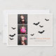 Diese Halloween-Karte hat einen hellgrauen Hintergrund mit umherfliegenden Fledermäusen und einem drei Foto Streifen entlang der links und Ihrem personalisierten Gruß rechts.