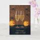 Für wunderbare Nachbarn, die auch Freunde sind. Eine niedliche Halloween-Karte mit Champagnerflöten gefüllt mit Bläschen, niedlichen Spinnen und Jack O' Lanterns. Ein lustiger Weg, Grüße auf Halloween zu schicken!