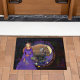 Karo dieses schöne Halloween funky DOORMAT mit einer Halloween-Hexe in einem lila Kleid, das eine Brühe macht, mit einem Baum, Mond, und krabbeln lila Spinne und eine Katze im Hintergrund. Dies kann nicht nur die Geburtstagsparty, sondern auch die Halloween-Zeit verbessern.