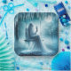 Eine geistreiche Figur, die in Weiß gezogen wird, sitzt auf einer Schaukel, die eine Eistüte in einer surrealen, unheimlichen Waldlandschaft hält, die von Vollmond beleuchtet wird