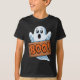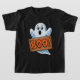 Dieses Halloween-Design zeigt ein Gespenst im Cartoon-Stil mit überraschendem Ausdruck, das hinter einer Holzplatte schwebt. Auf dem Schild ist das Wort "BOO!"in roten und zerbrochenen Buchstaben zu sehen, was auf die klassische Verzweiflung hindeutet, die mit den Geistern und den Überraschungen von Halloween verbunden ist. Der minimalistische Hintergrund zeigt Geist und Plakat auf und schafft ein spielerisches und festes Design für Auszeichnungen, Grußkarten oder Werbematerial für die Halloween-Veranstaltungen.