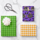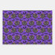 Das lakonische Muster der glücklichen Halloween-Schrift auf einem hellen lila Hintergrund und das Muster mit niedlichen Katzenköpfen vermitteln perfekt den Geist des Halloween-Urlaubs. Es passt gut zu den Produkten aus der Sammlung.