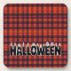 Durable Halloween hard coaster with ghost candle lettering on a red plaid background. Ideal for spooky parties and everyday table use.