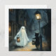 Halloween-Szene mit einem Gespenst- und Katzentreffen auf der Straße