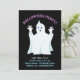 Schöne Halloween Ingwer Einladung. Auf der Rückseite ist ein Ghost-Muster auf schwarzem Hintergrund. Alle Texte und Zahlen sind personalisiert.