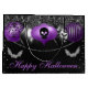 Glamouröses Halloween-Ornament-Design aus Schwarz und Lila Glitzer mit schwarzem Hintergrund, schwarzem Tropfer-Glitzer und silbernen Glitzer Fledermäuse