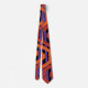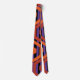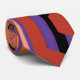 Diese Krawatte hat ein geometrisches Design von Sechsecken in vier Orangetönen auf einem Feld von schwarzen und lila Streifen.
