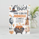 Halloween Cauldron Geburtstag Einladung Niedliche Einladung zum Halloween Geburtstag zu feiern. Laden Sie Leute mit diesem phantastischen Design in Ihr Party ein. Niedliche Katze, die aus dem Kürbis kommt, mit halbrunnenförmigen Bannern, Monden und Fledermäusen ist so eine tolle Kombination zum Geburtstag!