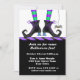Eine lustige Halloween Einladung mit Hexenbeinen mit leckeren Stiefeln, lila und grünen Beinen und einer schwarzen Spinne. Erstellt mit Original-Kunstwerken ©delightful-doodles.com