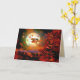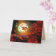 Eine Halloween-Grußkarte eines Hexefliegens hinter einem gespenstischen Vollmond auf Halloween-Nacht, rührendes hohes das Herbst-Blätter. Mein ursprünglicher Vers auf dem Innere ist kundengerecht.