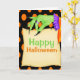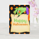 Halloween Hexen Hand mit einer Note Sprichwort Happy Halloween. Halloween Grußkarte .. mit Hexe auf einem gepunkteten Hintergrund in Orange und Schwarz... kommt komplett mit weißen Umschlägen ..Grußkarten von Ricaso einige Bilder mit CU-Lizenz delightful-doodles.com