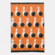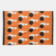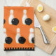 Cute Halloween gift or kitchen decor featuring funny bowling ball and ghost pin pattern on orange and black background.