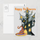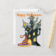 Fun Wasserfarbe Halloween Design bietet Spuk Halloween-Haus mit gestreiften Hexenhut und raven Silhouette.