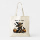 Hunde tragen einen Hexenhut auf einem Trick oder eine Tasche. Großartige wiederverwendbare Tasche für das Ausstreichen von Süßigkeiten. AI unterstützte Grafik, die mit kommerziellem Einsatz erworben wurde. Kunstwerk: RedHeronLighthouse
