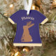 Ce magnifique ornement de Noël présente l'image art numérique d'une Jackalope, une créature mythique, aussi connue sous le nom de cryptide, qui vit dans la forêt. L'animal est un mélange d'un lapin-taupe et d'un cerf qui est la créature mythique officielle de l'état du Wyoming. Mon dessin a l'animal brun debout avec ses oreilles debout en regardant vers le haut. Il a des bois brun foncé sur la tête. La cheeky Jackalope a la réputation d'être un trickster, ce qui en fait l'animal parfait pour un tour d'Halloween ou de s'amuser. Il y a du texte personnalisé pour que vous puissiez le personnaliser avec un nom.