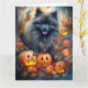 Halloween Keeshond mit Pumpkins Beängstigend Karte