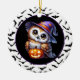 Halloween-Party Keramik Ornament wird mit einem niedlichen Eule-Druck gezeigt. Passen Sie dieses Objekt an oder kaufen Sie, wie es ist. Lizenziertes Bild