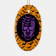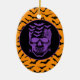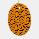 Halloween-Party Keramik Ornament wird mit einem undurchsichtigen Schädelprint auf einem orangefarbenen Fledermäusenhintergrund gezeigt. Passen Sie dieses Objekt an oder kaufen Sie, wie es ist. Lizenziertes Bild