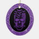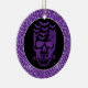 Halloween-Party Keramik Ornament wird mit einem undurchsichtigen Skull-Druck auf einem Spinnennetz lila Farbhintergrund gezeigt. Passen Sie dieses Objekt an oder kaufen Sie, wie es ist. Lizenziertes Bild