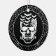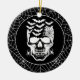 Halloween-Party Keramik Ornament wird mit einem spoky Skull-Druck auf einem Spinnennetz schwarzen Hintergrund angezeigt. Passen Sie dieses Objekt an oder kaufen Sie, wie es ist. Lizenziertes Bild