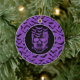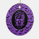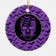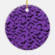 Halloween-Party Keramik Ornament wird mit einem undurchsichtigen Skull-Druck auf einem Fledermäuse lila Farbhintergrund gezeigt. Passen Sie dieses Objekt an oder kaufen Sie, wie es ist. Lizenziertes Bild