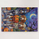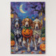 Adorable englische Setter, die in verspielten Halloweenkostümen gekleidet sind, tragen Kürbiseimer, während sie unter dem mondbeleuchteten Himmel tricksen oder behandeln. Dieses festliche Design hebt das seidengefiederte Fell der Rasse, die sanften Augen und die freundliche Persönlichkeit hervor und prägt die sprichwörtliche und dennoch lustige Atmosphäre Halloween-Abends perfekt. Ein schönes Fest für Hundefreunde und Halloween-Fans gleichermaßen.