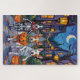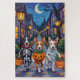Adorable Bull Terriers, die in verspielten Halloween-Kostümen gekleidet sind, tragen Kürbiseimer, während sie unter dem mondbeleuchteten Himmel tricksen oder behandeln. Dieses festliche Design hebt die Muskelstruktur der Rasse, den unverwechselbaren eiförmigen Kopf und die lebendige Persönlichkeit hervor, die perfekt die sprichwörtliche und dennoch lustige Atmosphäre Halloween-Abends einfangen. Eine charmante Feier für Hundefreunde und Halloween-Fans gleichermaßen.
