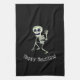 Küchenhandtuch schwarz mit einem Halloween Skelett gedruckten Design. Passen Sie dieses Objekt an oder kaufen Sie, wie es ist.