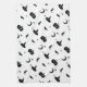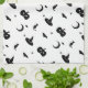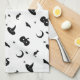 Halloween Küchentuch mit weißem Hintergrund und Niedliche Halloween-Silhouetten von Katzen, Fledermäusen, Sternen, Monden, Bonbons und Hexenhats. Kunst von Sara Motolanez