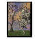 Skelett mit Laterne, die nachts an einem Baum vorbeigeht.
