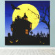 Halloween-Design mit spöttischer Burg, Friedhofsdekoration auf Vollmond