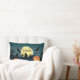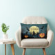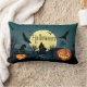 Halloween-Nacht Selebration, Karneval, Trendy lumbales Kissen - "Leckerei-oder Trick-" MAGISCHE Halloween-Nachtlumbales Kissen - Fantasie-Halloween-Muster, Halloween-Kürbis, Schläger, Spinne, Netz, Haus, Mond und Himmel. Nachtsymbole Illustration Halloweens fertigen magische mit Text-Änderungswahl besonders an